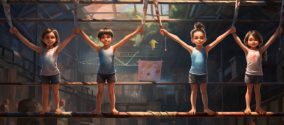 - Детали одежды и инвентаря: Добавление деталей одежды и спортивного инвентаря поможет создать ощущение движения и энергии. Например, вы можете нарисовать поднятые вверх руки в перчатках для бокса, или изображение девочки в полете с помощью юбки или волос, которые взлетают.